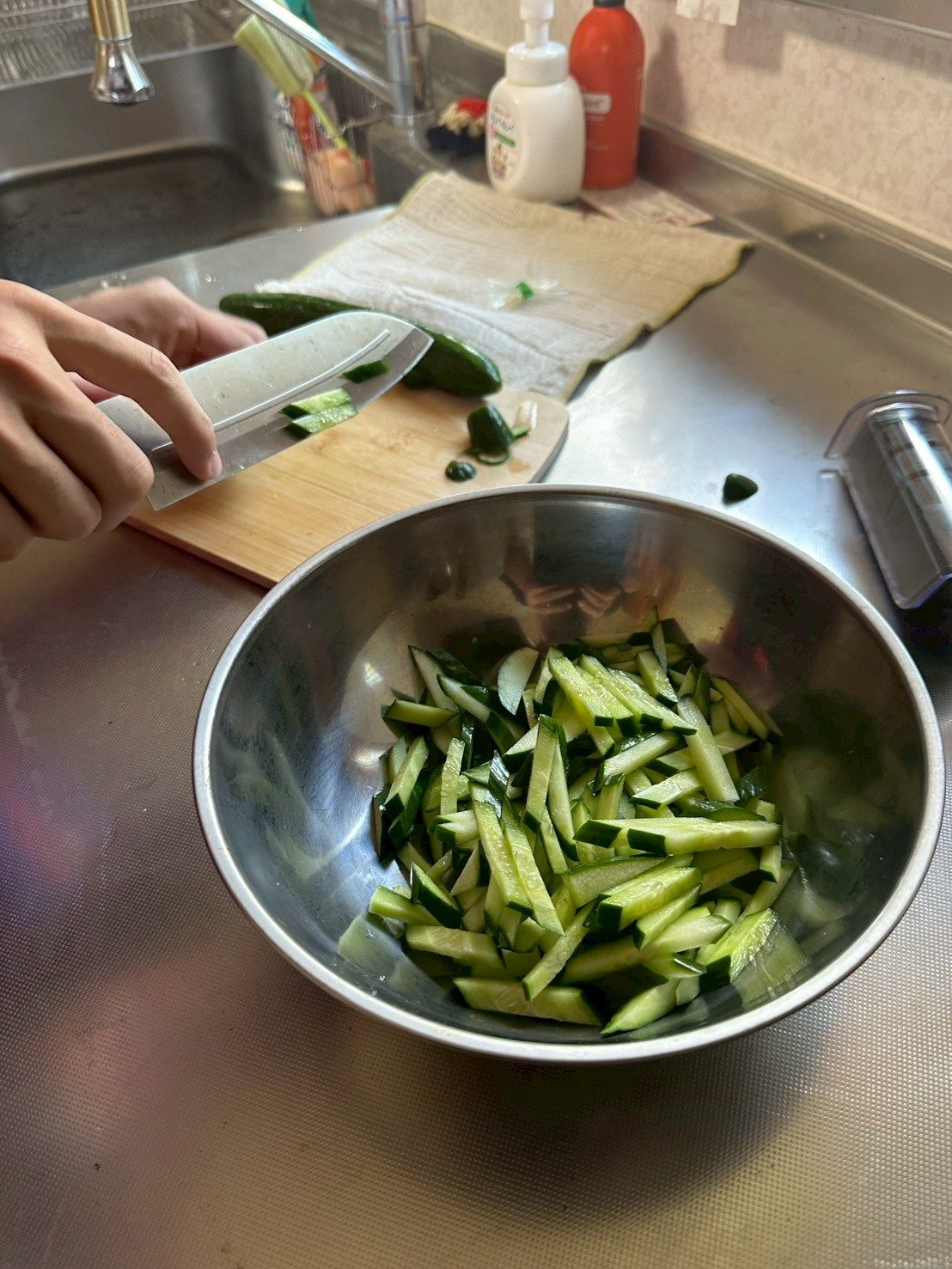 スタッフブログ 【調理】ジャージャー麺 2026.01.28 7/31の調理実習ではジャージャー麺を作りました。 話し合って決めた役割に従って手際よく進めることができました。 ひき肉の味付けは料理が得意な生徒が担当してくれました。 温玉も作りました ですが、長めに茹でてしまい、 「黄身がほおづきみたいになっちゃった」と生徒が言っていました。 生徒は温玉に納得いっていない様子でしたが、とても美味しかったです。